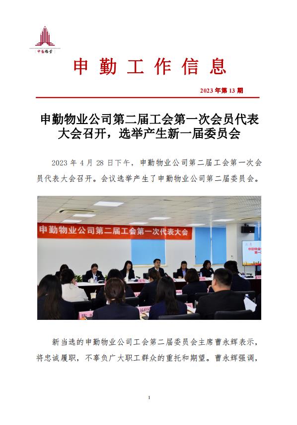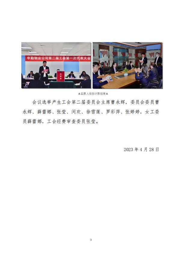 申勤物业公司第二届工会第一次会员代表 大会召开,选举产生新一届委员会